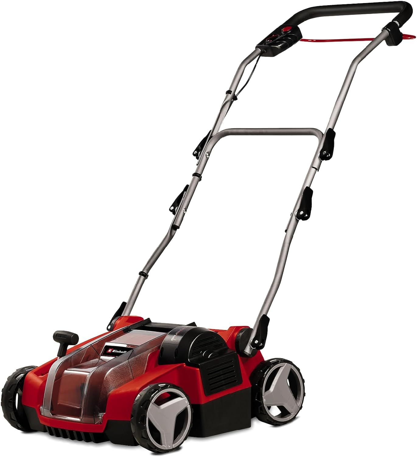 • Lieferung ohne Akku – Der Einhell Akku-Vertikutierer-Lüfter GE-SC 36/35 Li-Solo wird ohne Power X-Change Akkus und ohne Ladegerät geliefert. Diese sind separat erhältlich.