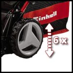 • Ein perfektes Schnittergebnis gelingt mit dem Einhell Vortex Technology Deck und der 6-stufigen Schnitthöhenverstellung. Als Highwheeler bewältigt der Rasenmäher auch anspruchsvolles Gelände.