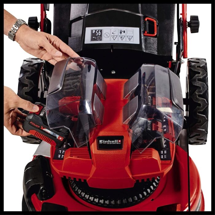 • Durch die 4 im Lieferumfang enthaltenen Batterien und die 2 Twin-Charger-Schnelladegeräte ist ein längeres Mähen ohne lästiges Warten möglich.