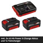 • Im Lieferumfang enthalten sind 2x 4.0 Ah System-Akkus der Power X-Change-Reihe und ein System-Schnellladegerät (Power X-Twincharger 3A), das universell für alle PXC-Akkus genutzt werden kann