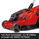 Marke: Einhell Farbe: Rot, Schwarz Eigenschaften: Power X-Change – Der Akku-Rasenmäher RASARRO 36/42 (2×5,2 Ah) ist Teil der Einhell Power